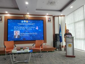 BDSRC–AIRDC BINUS University, in collaboration with the Faculty of Fisheries and Marine Science (FPIK) of Universitas Jenderal Soedirman (UNSOED), held a series of Monitoring and Evaluation (Monev) activities for joint research in the fields of Fisheries and Artificial Intelligence (AI) from November 4 to 6, 2025. The series began with two thematic workshops conducted at the Integrated Academic Building. The first workshop, titled AI-Powered Literature Review: Streamlining PRISMA Workflow for Researcher, was held on Tuesday, November 4, 2025, presented by Ir. Kuncahyo Setyo Nugroho, M.Kom and moderated by Dr.rer.nat. Hamdan Syakuri. The second workshop, Molecular Tools for Fisheries: Designing DNA Microsatellite Primer for Intensive Breeding Programs, was conducted on Wednesday, November 5, 2025, by Rudi Nirwantono, M.Mol.Bio., with Philipus Uli Basa Hutabarat, Ph.D., as moderator. The event was officially opened by the Vice Dean of FPIK UNSOED, T. Junaidi, S.E., M.Pi., and the Director of BDSRC–AIRDC, Prof. Dr. Bens Pardamean. The workshop was attended by 40 participants consisting of students, lecturers, and researchers.